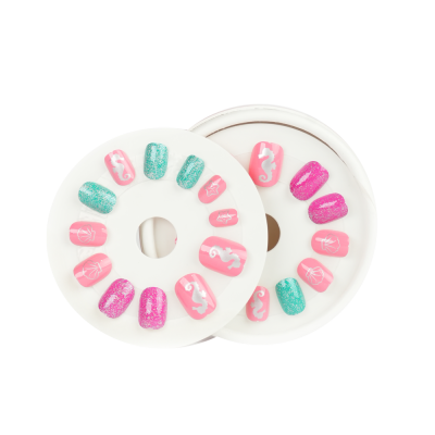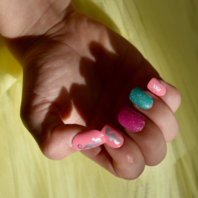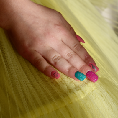 Je to super jednoduché! Detské nechty majú gélovú nálepku rovno na umelom nechte, preto ho stačí aplikovať pritlačením. Nechty sú znovupoužiteľné.